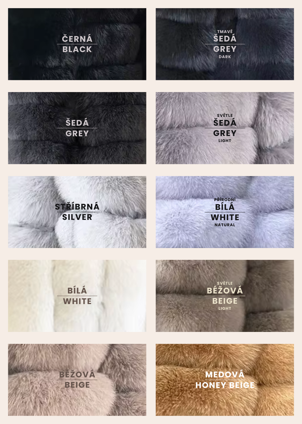 Náš Kožich Bubble Fox je symbolem sebevědomí a čistého luxusu. Vyrobený z nadýchané liščí kožešiny s výrazným objemem, který okamžitě přitahuje pozornost. Každý kus je ručně zpracovaný tak, aby vytvořil ikonickou siluetu, která prodlouží postavu a zvýrazní ženské křivky.