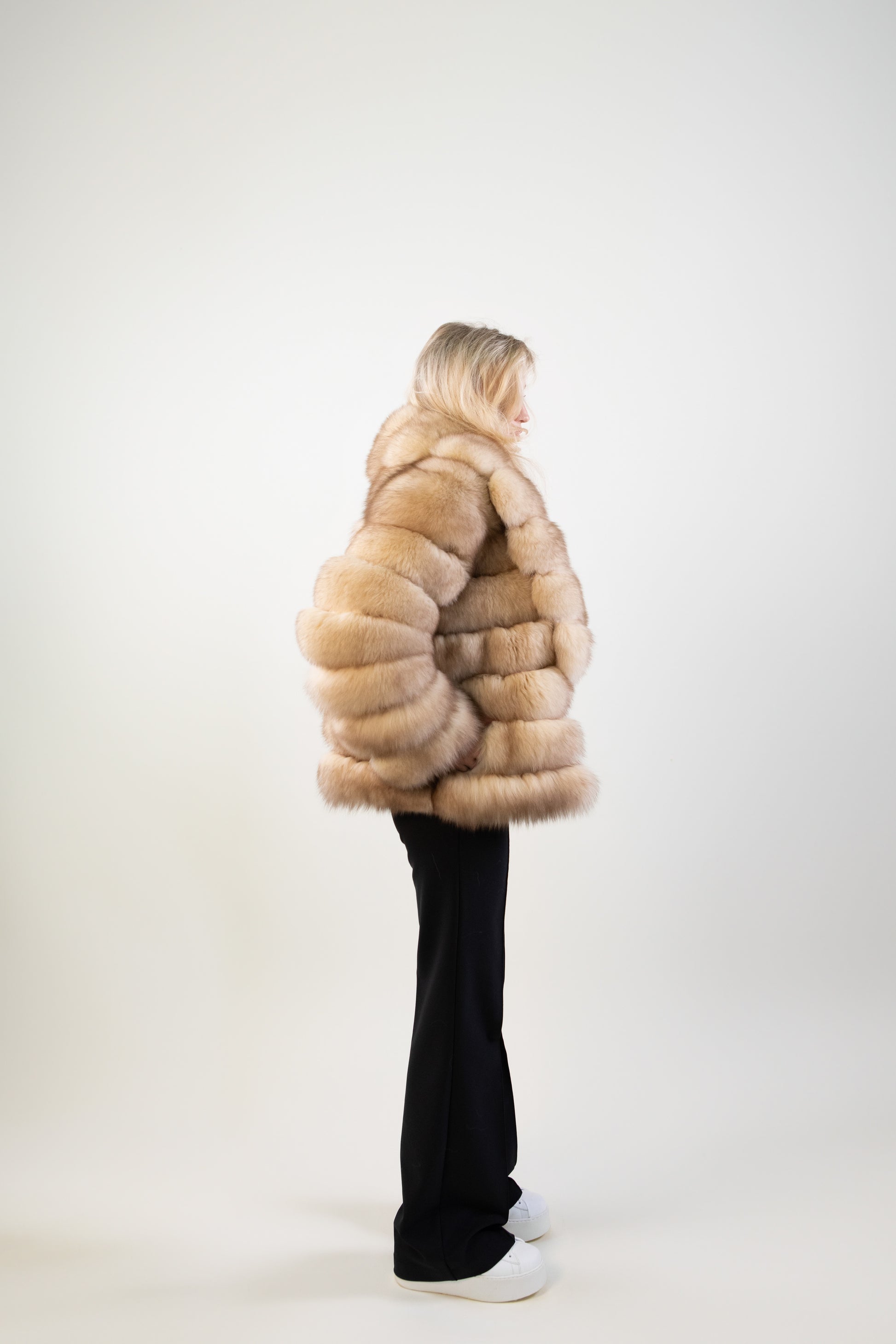 Náš Kožich Royal Fox je symbolem sebevědomí a čistého luxusu. Vyrobený z nadýchané liščí kožešiny s výrazným objemem, který okamžitě přitahuje pozornost. Každý kus je ručně zpracovaný tak, aby vytvořil ikonickou siluetu, která prodlouží postavu a zvýrazní ženské křivky.